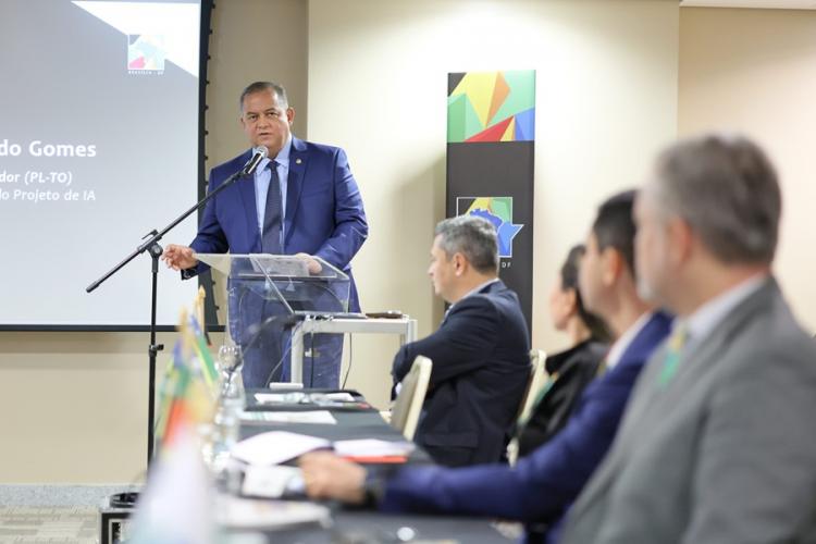 O encontro seguiu com o senador Eduardo Gomes (PL) de Tocantins, explicando o andamento do Projeto de Lei da Inteligência Artificial, no qual é relator, destacando o objetivo da iniciativa e entregando o relatório que está em consulta para análise e contribuição dos secretários.