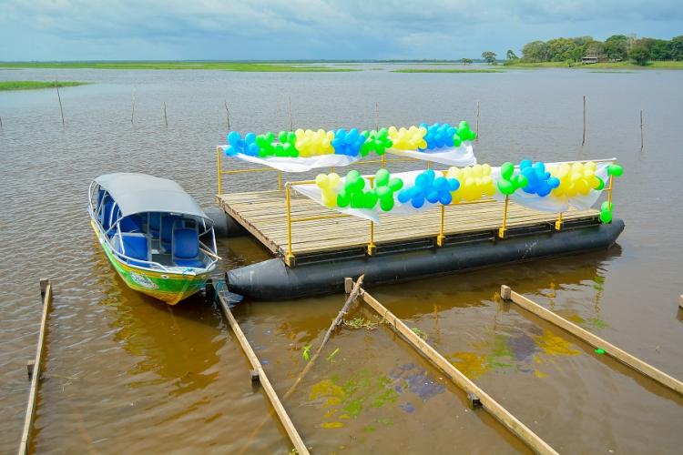 Com recursos do Tesouro Estadual, o Governo do Amapá adquiriu uma balsa flutuante que atenderá as demandas de transporte de veículos, máquinas, equipamentos, pessoas e insumos para as fazendas da Região dos Lagos. A estrutura, feita de aço e madeira, contou com o investimento de R$ 37 mil.