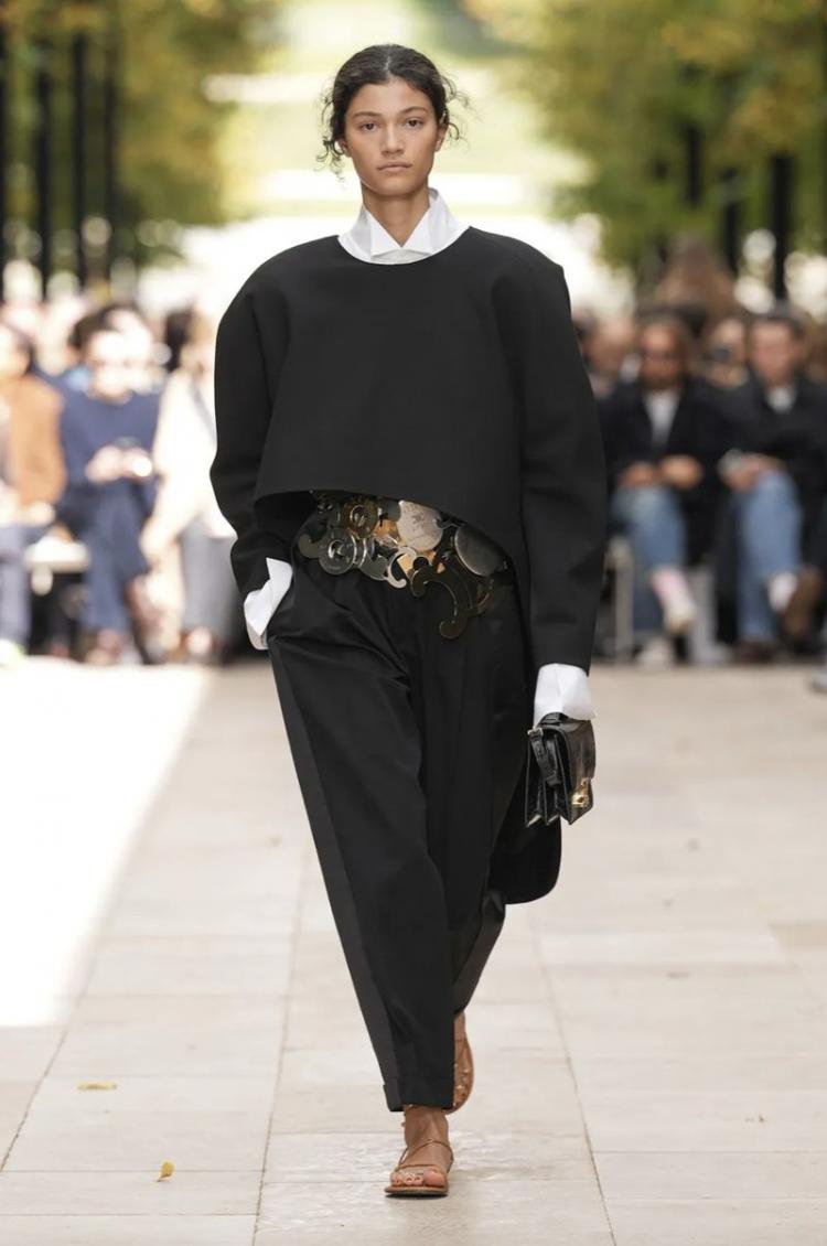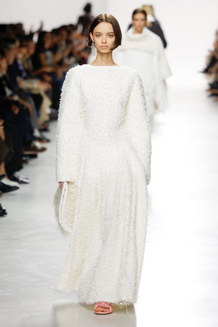 Exclusiva da grife Celine, a neotop foi eleita para fechar o desfile realizado em Paris.