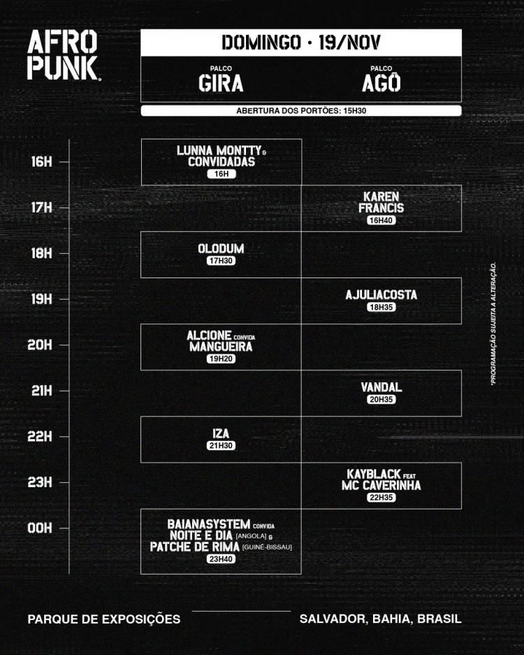 Confira os horários do festival AFROPUNK Bahia abaixo: