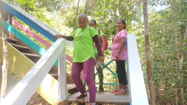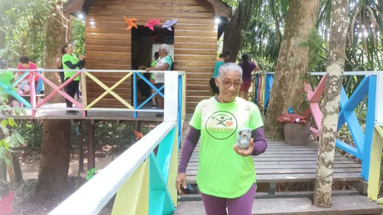 “A programação em meio a natureza é uma forma dos idosos praticarem atividade física aproveitando o lazer e interação entre eles. É um momento de autocuidado com a saúde, uma rotina de vida saudável”, explica a coordenadora do Cras Amor, Suellen Farias.