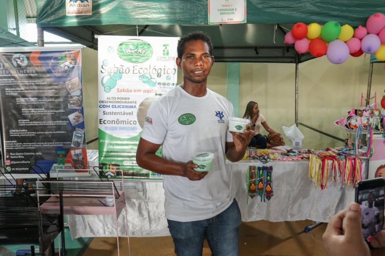 O estudante Francenildo Natividade, de 38 anos, foi um dos expositores que participaram do evento, com a venda de sabonetes sustentáveis à base de glicerina. Para o aluno, a feira representou uma oportunidade de colocar em prática os conteúdos de gestão que aprendeu em aula.
