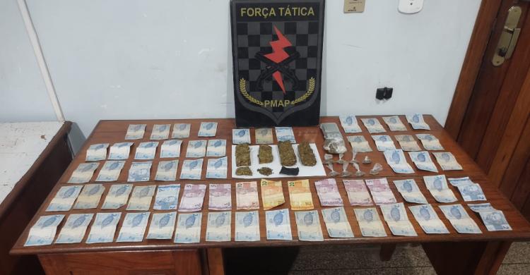 Policiais encontram porções de maconha e balança de precisão em residência durante ação no bairro Pedrinhas, em Macapá.