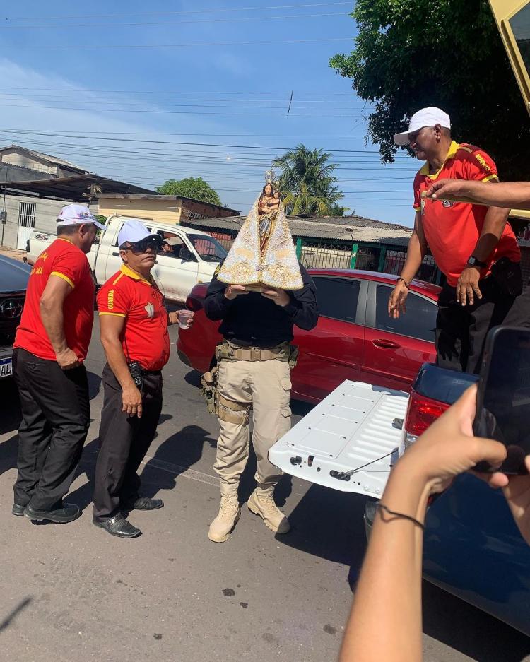 Os policiais e a instituição agradeceu a Diocese de Macapá: "Agradecemos à Diocese de Macapá pela parceria e aos Órgãos de trânsito que cooperaram para o sucesso do evento".