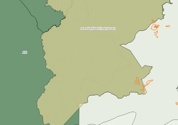 A situação da TI Jacareúba-Katawixi é preocupante, porque se trata do território dos Isolados do Katawixi, povo que provavelmente pertence à família linguística Katukina, e cujo processo de homologação se arrasta há 17 anos com sucessivas renovações da Portaria de Restrição de Uso (a última aconteceu em fevereiro de 2023). A TI tem a maior parte da sua área sobreposta a duas UCs, o Parna Mapinguari e a Reserva Extrativista (Resex) Ituxí, que também estão entre os municípios de Lábrea e Canutama.