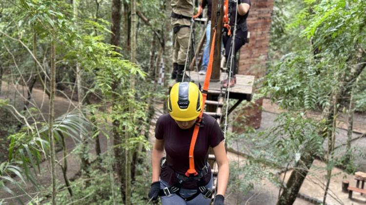 Para os mais aventureiros, foi disponibilizada a trilha suspensa. De cima, os participantes tiveram visão ampla do espaço e da fauna. Ludmila Guimarães, 23, não perdeu a oportunidade. “Gostei muito. Minha parte favorita foi a tirolesa, mas, também gostei de ficar lá em cima. Foi minha primeira vez. Uma experiência bem bacana”, disse.
