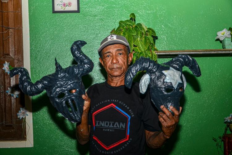 “É um trabalho que leva quase um ano de produção. As máscaras são feitas com materiais recicláveis, utilizando papel, goma de tapioca e uma forma de argila. Produzo, junto com meus filhos e minha ex-esposa, uma média de 400 peças, que são vendidas dias antes da festa”, explicou Soares.