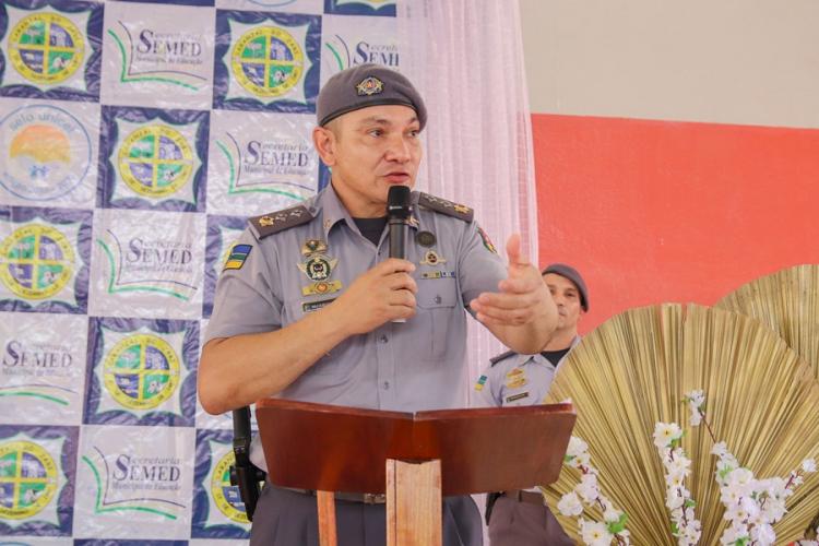 A solenidade de encerramento contou com a participação do procurador do município, Kaio Araújo; do promotor de Justiça, Arthur Jacob; comandante do 11° Batalhão da PM-AP, Major Serafim; do secretário adjunto de Educação de Laranjal do Jari, Acleuso Gomes e do vereador do município, Américo Santos.