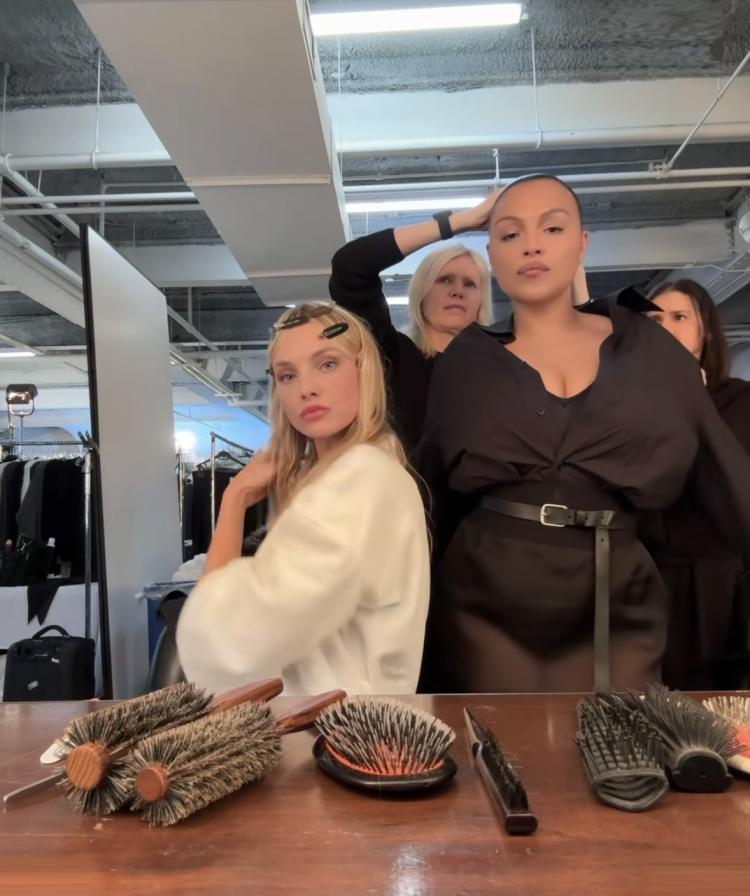 Carol Trentini posou nos bastidores da produção ao lado de outras estrelas da moda como Amber Valletta, Palomija, Candice Swanepoel e Natasha Poly.