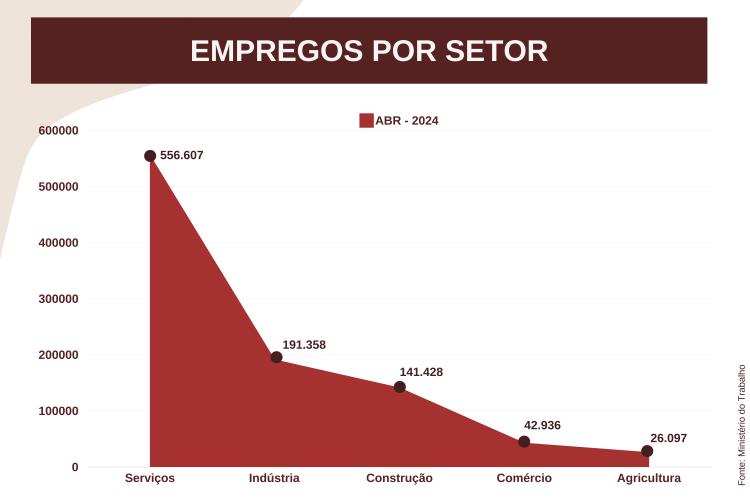 Até o momento, o saldo de empregos entre janeiro e abril de 2024 é o maior desde 2012, chegando a 958.425 empregos. Por setor econômico, a área de serviços lidera com o maior saldo de empregos formais no quarto mês do ano, registrando 556.607 filiações, seguida pela indústria (191.358), a construção civil (141.428), o comércio (42.936) e a agricultura (26.097).