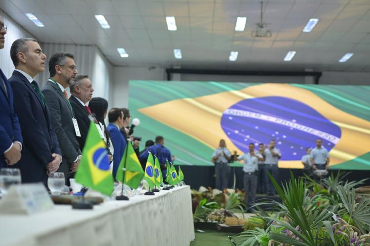 Nesta terça-feira, 11, o governador do Amapá, Clécio Luís, recepcionou mais de 60 membros do Ministério das Relações Exteriores do Brasil e cerca de 100 autoridades francesas para o primeiro dia da 13ª Comissão Mista Transfronteiriça Brasil-França. A abertura da cerimônia, na sede do Serviço Brasileiro de Apoio às Micro e Pequenas Empresas (Sebrae), contou com a apresentação solene dos hinos brasileiro e francês, orquestrados pela Banda da Polícia Militar.