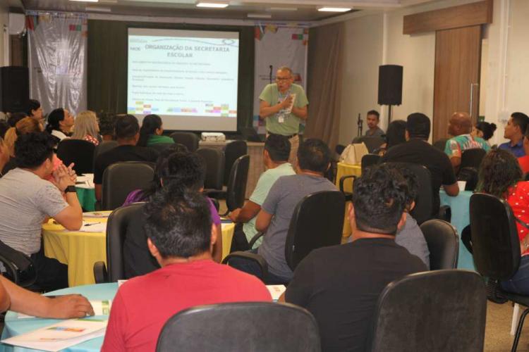 Reunião ocorreu no auditório da Secretária de Educação nesta quinta-feira, 11, para tratar das demandas das 24 unidades escolares das aldeias do Parque.