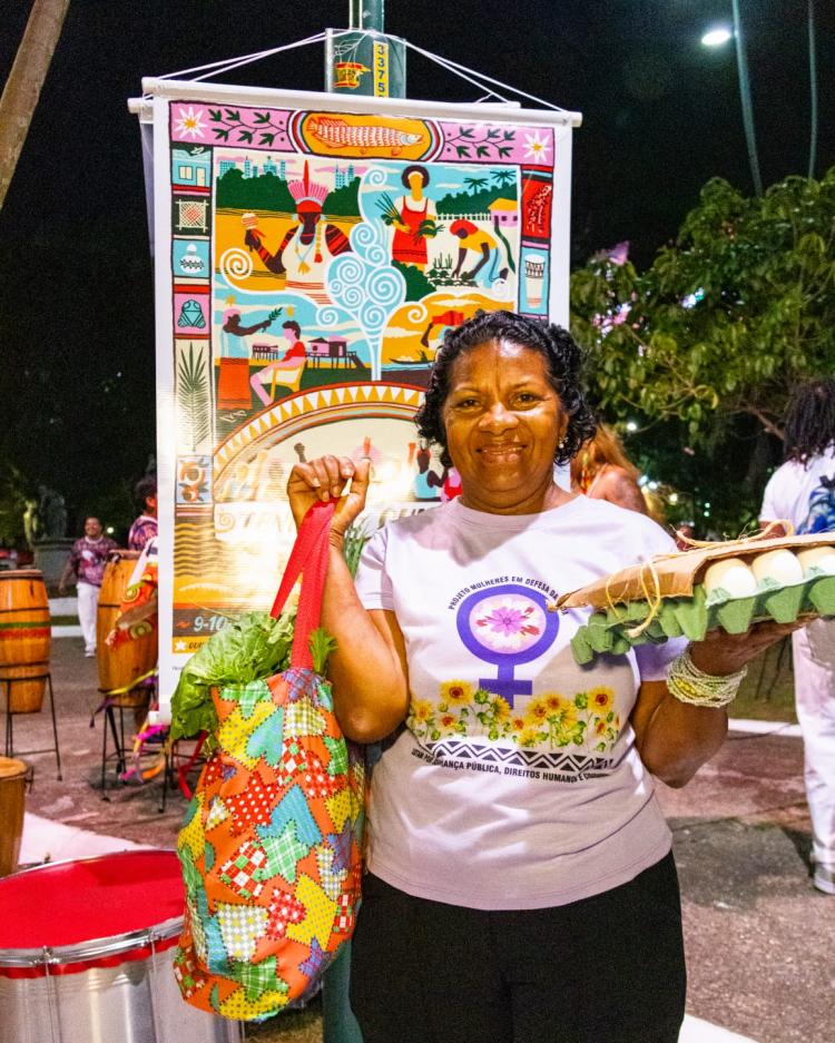 Socorro Silva, de 63 anos, esteve no evento distribuiu 50 cestas de alimentos orgânicos da agricultura familiar, produzidos em territórios paraenses.