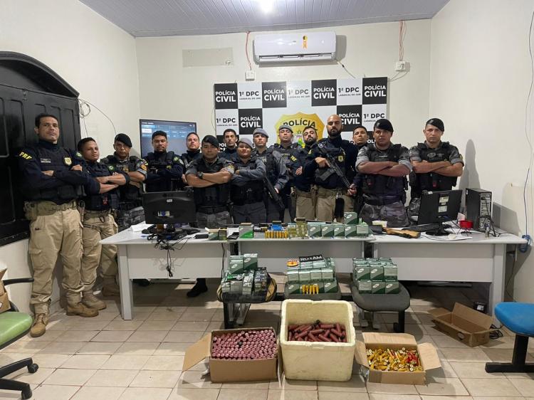 Resultado da ação conjunta da PRF, ROTAM e 11° BPMAP, operação resulta na prisão de dois homens e apreensão de toneladas de munições e armas ilegais.