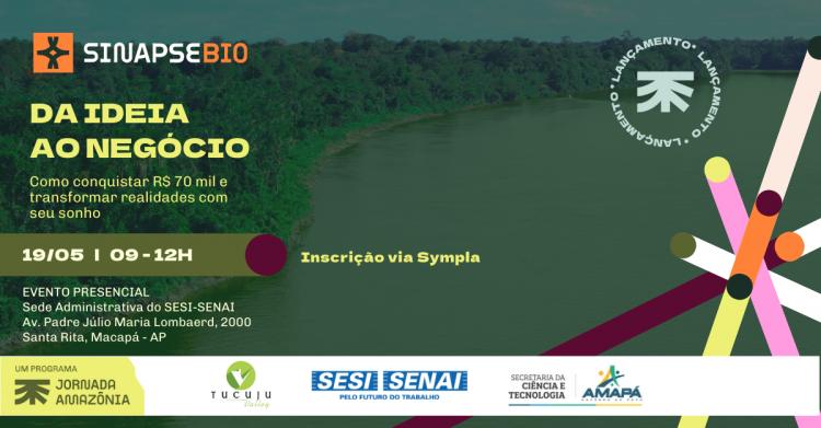 No dia 19 de maio, às 9h, acontece em Macapá (AP) o evento estadual de lançamento do Sinapse da Bioeconomia, programa gratuito que vai investir R$ 70 mil em até 70 ideias inovadoras para criar novos negócios nos estados da Amazônia Legal.