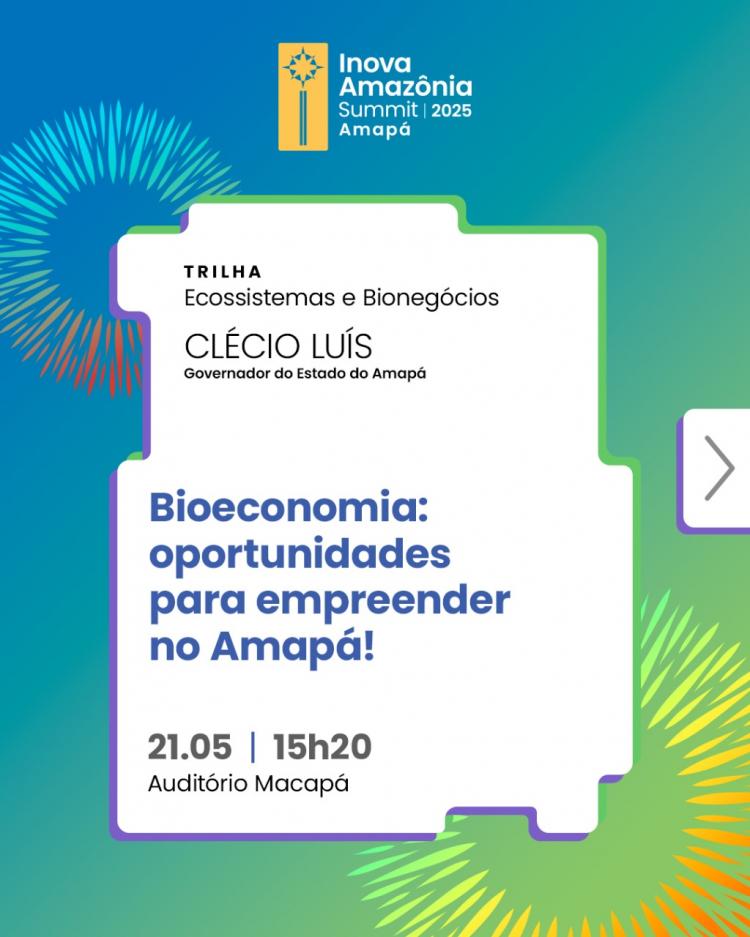 O Serviço de Brasileiro de Apoio às Micro e Pequenas Empresas (Sebrae) e o Governo do Estado do Amapá (GEA) promoverão quatro palestras magnas durante o Inova Amazônia Summit, maior evento de bioeconomia da região. Os palestrantes Miguel Falabella, governador Clécio Luís, Helena Bertho, Luis Justo e Arthur Igreja, apresentarão inovação, bioeconomia, sustentabilidade, turismo, tecnologia e tendências para o futuro. O Inova Amazônia Summit acontece no Centro de Exposições do Sebrae no Amapá, no período de 21 a 23 de maio, das 14h às 21h.