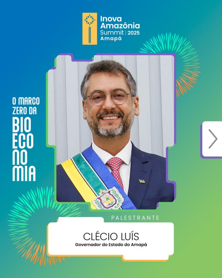 O primeiro palestrante do evento será o governador do Amapá, Clécio Luís Vieira, que abre o evento, com a Palestra Oportunidades para Empreender no Amapá. A palestra acontece na Trilha Ecossistemas e Bioeconomia, a fim de esclarecer como políticas públicas e vocação ambiental se conectam para transformar a realidade empreendedora da Amazônia. A palestra acontece no Salão de Eventos Macapá, na quarta-feira, 21 de maio, às 15h20.