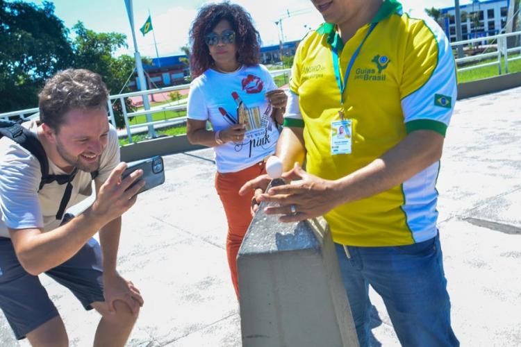 O monumento do Marco Zero, na Zona Sul da capital, também esteve na lista de visitação dos turistas. A ida ao ponto que marca o lugar por onde passa a Linha do Equador e divide o planeta em dois hemisférios, gerou uma brincadeira muito conhecida e que é uma das curiosidades do local: colocar um ovo em pé, em cima da estrutura do monumento. A distração atraiu os visitantes, que fizeram questão de fazer o teste, chamando a atenção de quem esteve no local pela primeira vez, como a conselheira da Prefeitura da Guiana, Cabassud Isabelle.