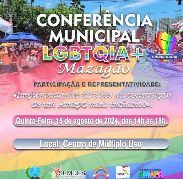 A Prefeitura Municipal de Mazagão, por meio da Secretaria Municipal de Desenvolvimento Social (SEMDES) e outras instituições, realiza nesta quinta-feira, 15 de agosto, a I Conferência Municipal LGBTQIA+. O evento acontece no auditório do Centro de Múltiplos Usos, das 14h às 18h.