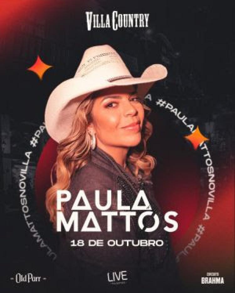 No dia 18 de outubro, a cantora e compositora Paula Mattos fará uma apresentação especial no Villa Country, em São Paulo. O show marca o lançamento de um novo projeto, com a gravação de quatro músicas inéditas e regravações de alguns dos maiores sucessos da artista. O repertório também incluirá canções que se tornaram conhecidas nas vozes de outros artistas, mas que são composições assinadas por Paula Mattos.