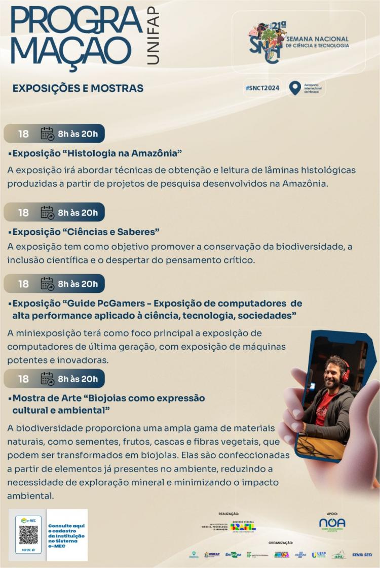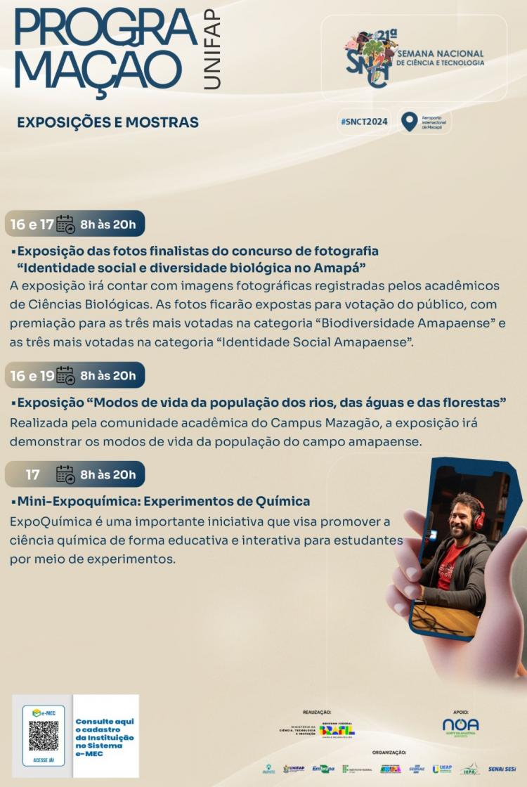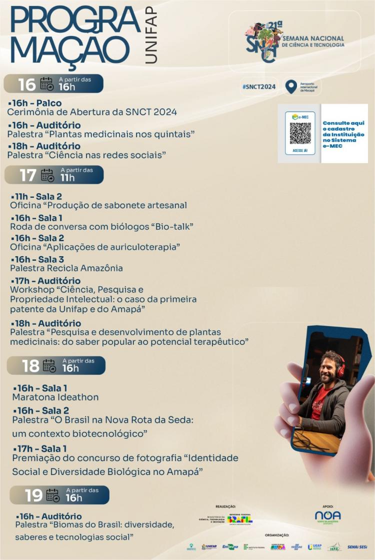 CONFIRA A PROGRAMAÇÃO DA UNIFAP NA SNCT 2024 abaixo da matéria.