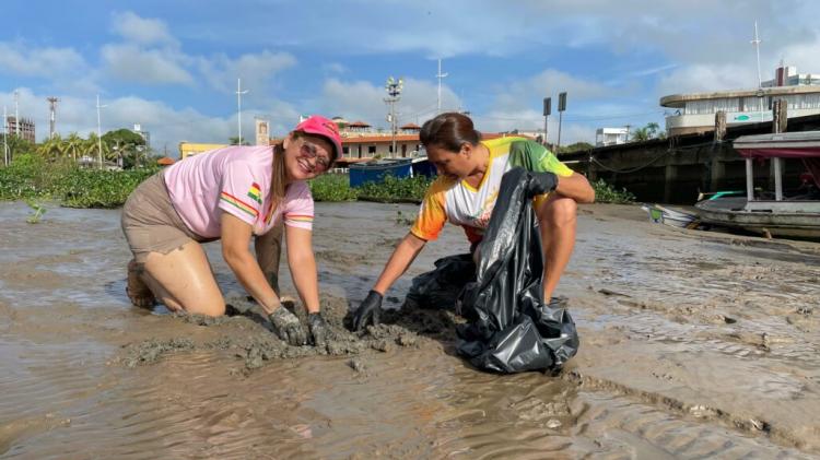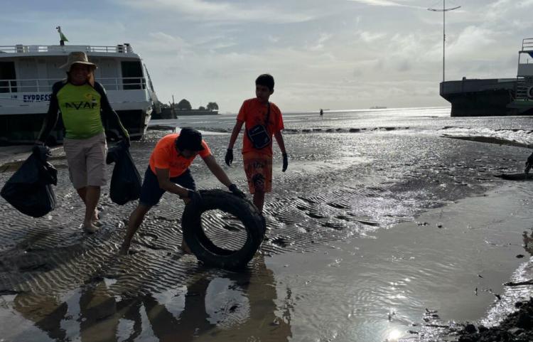 Desde cedo, voluntários, esportistas e servidores da gestão municipal se reuniram para remover resíduos sólidos como pneus, garrafas pet e de vidro, e sacolas plásticas que poluíam a orla e o rio Amazonas.