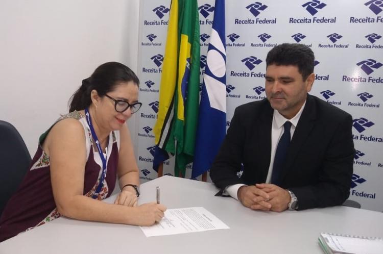 O campus Binacional do Oiapoque, da Universidade Federal do Amapá (Unifap), receberá da Delegacia da Receita Federal no Amapá (DRF-AP) dois automóveis modelo picape para serem utilizados nas ações de ensino, pesquisa e extensão do campus. O termo de doação foi assinado na manhã desta sexta-feira, 19, pela vice-reitora da Universidade, Profa. Dra. Ana Cristina Maués, e pelo delegado da Receita Federal do Amapá, Adelmo Gomes.