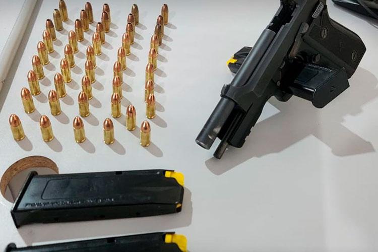 Três pessoas foram presas em flagrante e uma arma de fogo de uso restrito também foi apreendida.