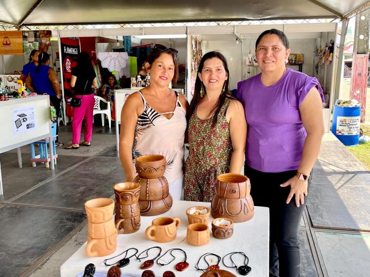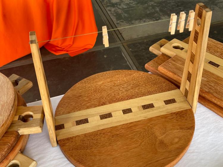 A artesã Ana Cleide Carvalho, que mora em Mazagão, faz parte da Associação dos Artesãos Tribo das Artes Mazaganense (Asartam), relata que junto as consultorias do Sebrae em 2023, trabalhou com a tábua de frios, e agora em 2024, com as máscaras.