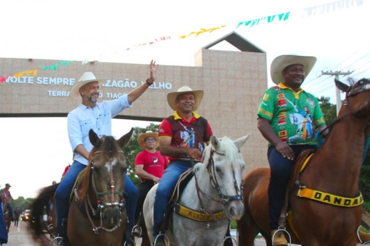 À cavalo, o governador percorreu as ruas da cidade acompanhado de lideranças municipais e estaduais. Ao fim do trajeto, que iniciou na entrada do município, o gestor abriu as portas do prédio e celebrou junto com a comunidade ao som da música "São Tiago me chamou", da artista local Verônica dos Tambores, e da dança do Vominê, manifestação característica do festejo cultural.