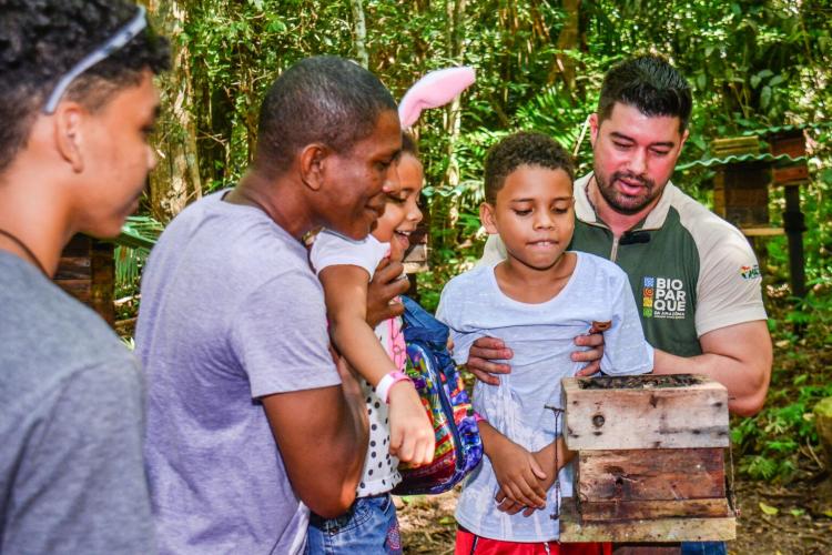 Dentro da trilha Sacaca do Bioparque, encontra-se o fascinante Meliponário. Este espaço desempenha um papel crucial no manejo de abelhas sem ferrão, proporcionando educação ambiental para o público. O meliponário abriga aproximadamente 100 mil abelhas da espécie Uruçu, distribuídas em mais de 120 colmeias. Essas abelhas desempenham um papel vital na polinização das plantas cultivadas e na preservação da rica biodiversidade local.