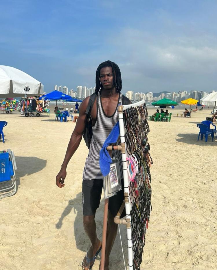 O new face de 25 anos foi revelado há poucos meses, após ser visto enquanto vendia óculos de sol, caminhando pela areia das praias do Guarujá - cidade litorânea em São Paulo, onde mora.