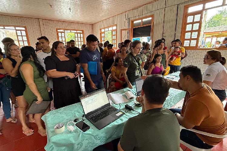 A ação de atendimento recebe produtores rurais e extrativistas de 18 de vilas, lugarejos e rios no entorno à Comunidade Ariramba em Mazagão/AP
