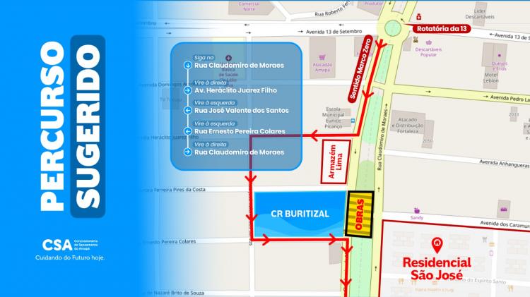 Os serviços fazem parte das obras de instalação da nova adutora que interligará o sistema ao Centro de Reservação Buritizal - CR Buritizal, atualmente em construção. Para garantir a fluidez e a segurança, o tráfego de veículos será redirecionado pelas vias do entorno da obra da seguinte forma: