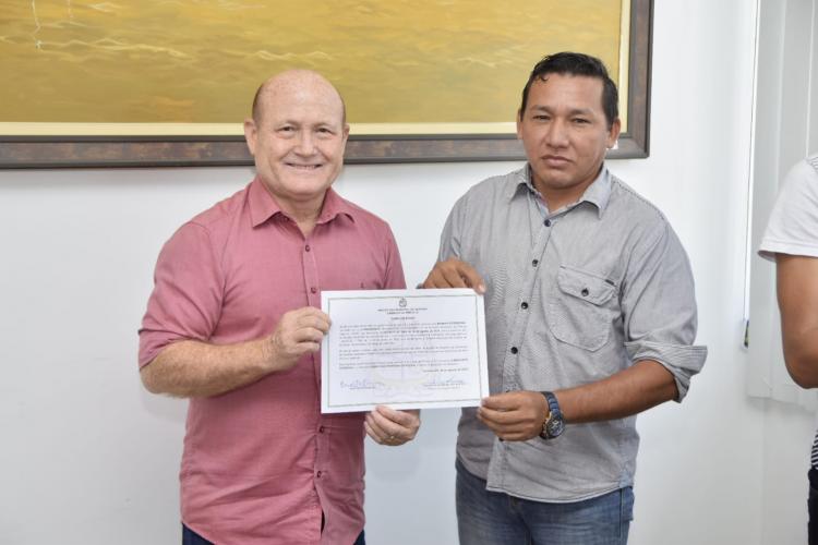 Durante o evento, Bala Rocha assinou termo de posse do novo conselheiro de Políticas Culturais de Santana, Jonas Carvalho, que representa a classe artística dos músicos locais.