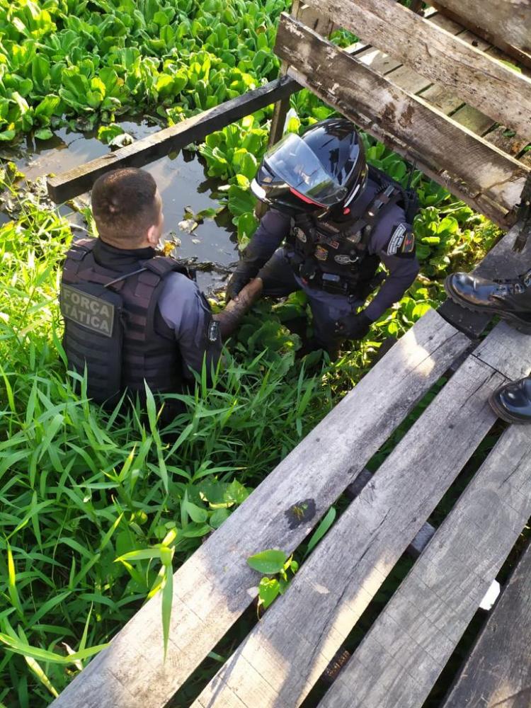 Uma equipe do Batalhão de Força Tática foi direcionada a uma área próxima a uma ponte após receber uma denúncia sobre o roubo de uma arma de um policial penal, que estava sendo exibida por criminosos nas redes sociais. Ao chegarem ao local, quatro indivíduos armados confrontaram a equipe do Força Tática, resultando na morte de um deles durante o tiroteio.