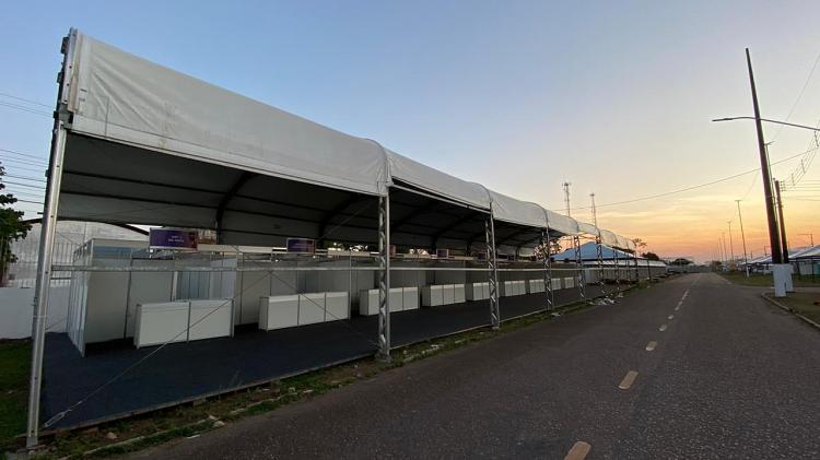 O Pavilhão Aquário da Inovação na 52ª Expofeira do Amapá é coordenado no Sebrae pelo gerente da Unidade de Soluções Inovadoras e Competitivas do Sebrae no Amapá Gerente (Unic), Bruno Castro e a analista de negócios do Sebrae no Amapá, Josseli Pantoja.