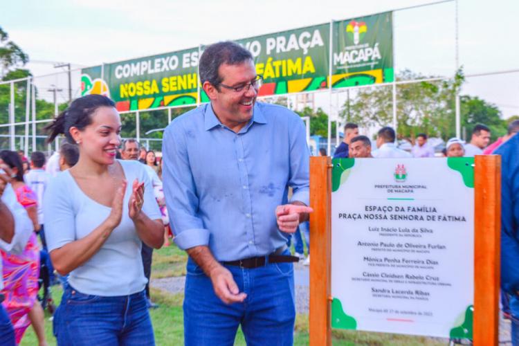 A Prefeitura de Macapá inaugurou nesta quarta-feira (27), a segunda parte das obras da Praça Nossa Senhora de Fátima, o ‘Espaço da Família’. Com 1.025,97 m², o local possui área de lazer e convivência para a comunidade.