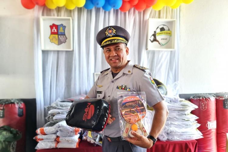 Incentivo ao esporte: Alunos de projetos sociais da PM recebem materiais esportivos
