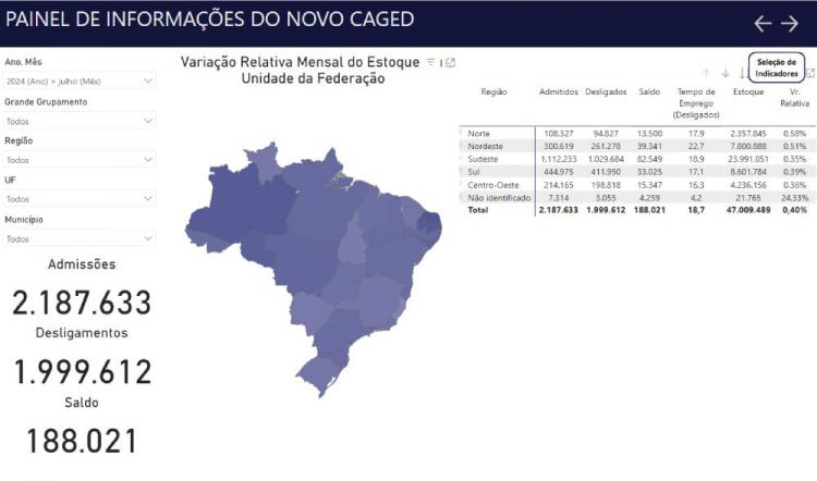 Para consultar os dados completos, acesse o dashboard interativo desenvolvido com tecnologia Power BI, disponível online pelo Ministério do Trabalho e Emprego.