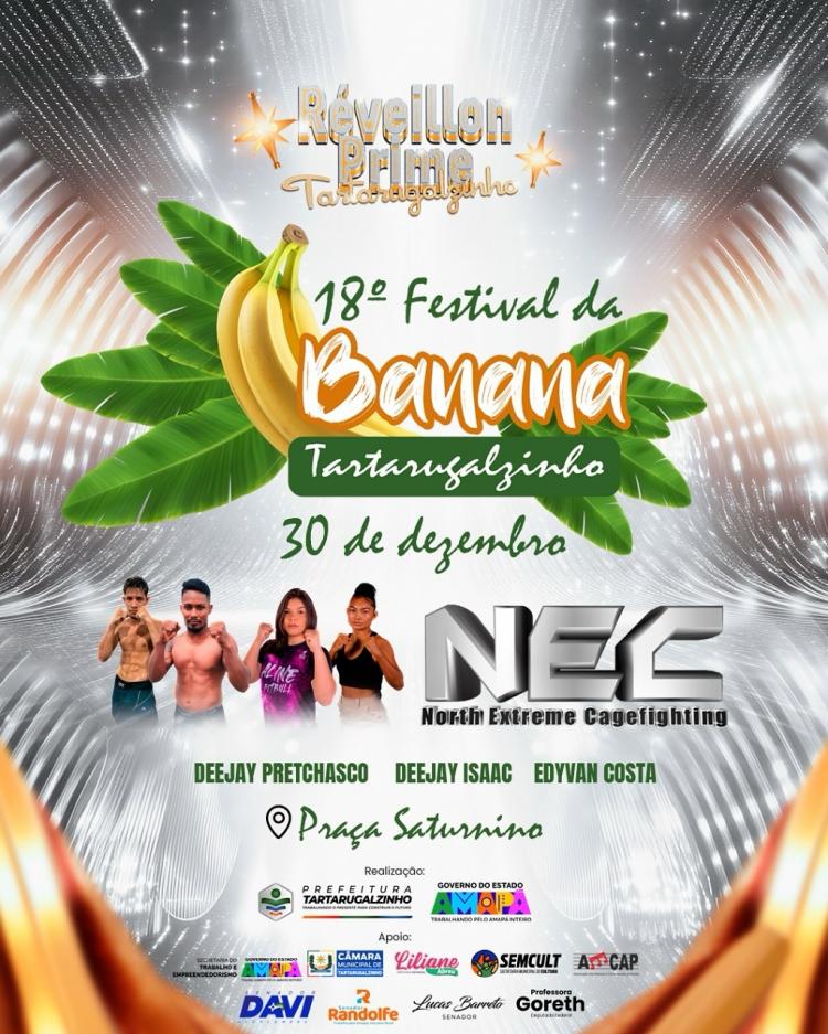 Nesta segunda-feira, 30, a programação será aberta com o evento de luta NEC, para comemorar o '18º Festival da Banana', que oferece o melhor da cultura local, com shows, gastronomia e muito mais.