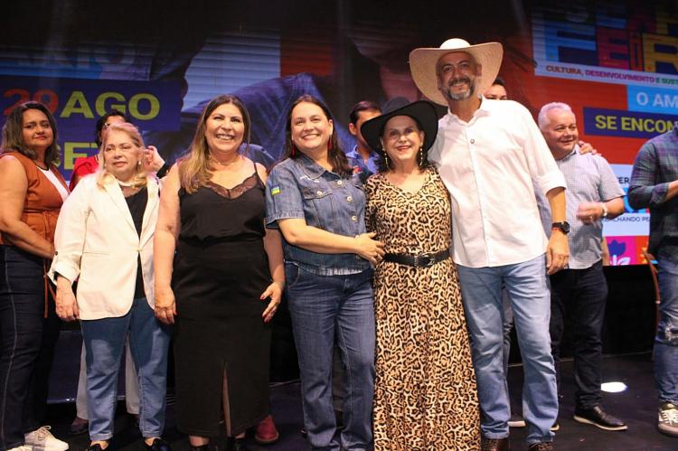 A superintendente do Sebrae, Alcilene Cavalcante; o presidente do Conselho em exercício, Jurandil Juarez; a diretora do Sebrae técnica, Suelem Amoras; e o diretor financeiro, Marcell Harb, coordenam a Arena Sebrae na 53ª Expofeira, e atenderá ao público, no período de 29 de agosto a 8 de setembro, das 17h às 23h.