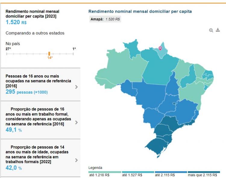 O Amapá se destaca como líder em renda per capita na Região Norte do Brasil, evidenciando um crescimento notável em 2023. Com um rendimento mensal domiciliar per capita de R$ 1.520, o Estado registrou um aumento de 29,1% em comparação ao ano anterior. A conquista foi impulsionada por políticas estratégicas do Governo do Estado, direcionadas para o fortalecimento do comércio, indústria e serviços.