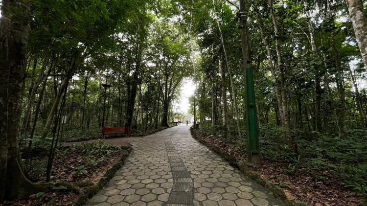 Angelim-vermelho, pau-Brasil, breu e sapucaia, são árvores do bioma amazônico encontradas no parque