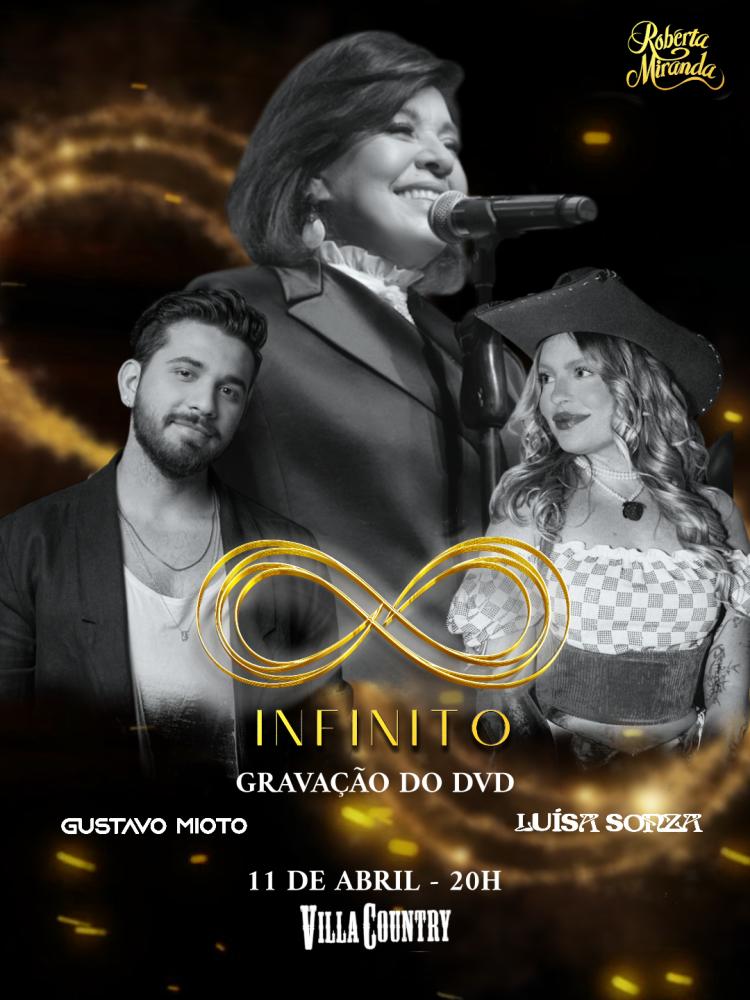 “A Luísa e o Gustavo são dois jovens talentosíssimos, duas pessoas muito queridas, que amo e é com muita alegria que os recebo neste DVD. O público pode aguardar que será uma noite linda e inesquecível”, comenta Roberta Miranda que neste novo projeto mostra como tem se reinventado, apresentando um repertório mais dançante e que promete agradar ao público de todas as idades. Em “INFINITO”, ela contempla canções inéditas, sucessos de outros artistas com novas roupagens e regravações de músicas próprias, atendendo aos pedidos enviados pelos fãs nas redes sociais. Clássicos como “Majestade, o Sabiá” e um medley de “Sol da Minha Vida e Vá Com Deus”, é claro, não vão ficar de fora!