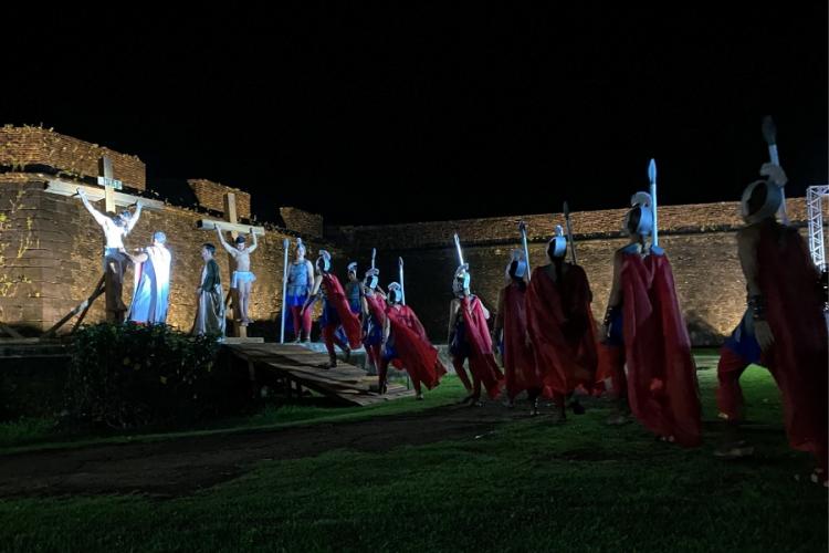 Centenas de fiéis foram ao Anfiteatro da Fortaleza de São José de Macapá, na noite desta sexta-feira, 29, para prestigiar o espetáculo “Uma Cruz Para Jesus”, famosa e tradicional encenação da Paixão de Cristo. Este ano, com apoio do Governo do Amapá e tema “Amai-vos uns aos Outros”, a peça completa 45 anos de apresentações na Semana Santa, revivendo a história de Jesus e emocionando o público.