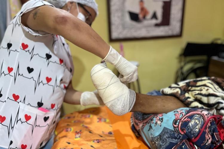 "Ela está tendo um atendimento maravilhoso, todas as manhãs a equipe vem até nossa residência, deixam as medicações que ela faz uso diário e fazem o curativo dela. Para a gente está sendo de grande ajuda, porque é um tratamento extremamente caro que está sendo feito no domicílio, então eu só tenho a agradecer", relatou Amanda.