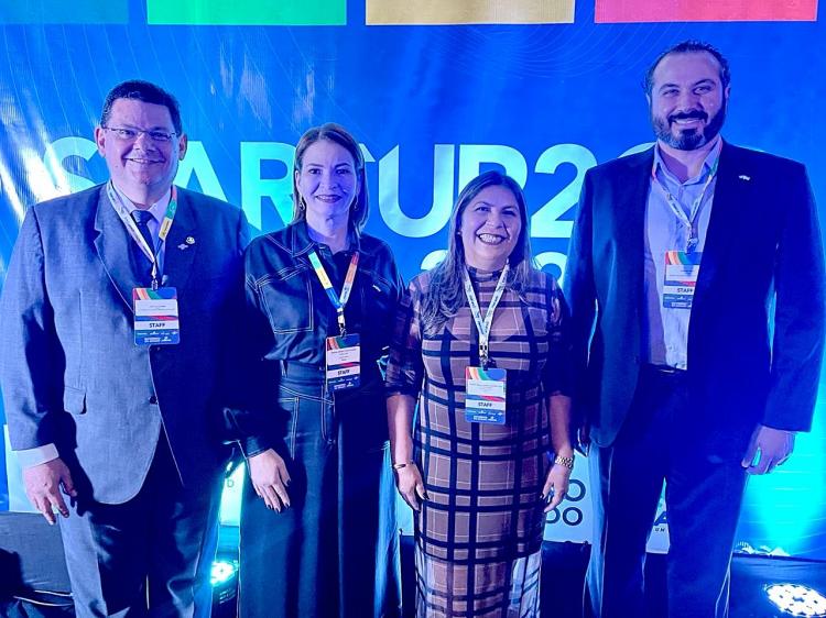 O presidente do Conselho Deliberativo do Sebrae no Amapá, Josiel Alcolumbre; a superintendente, Alcilene Cavalcante; a diretora técnica, Suelem Amoras; e o diretor de administração e finanças, Marcell Harb, junto ao governador do Estado, Clécio Luiz Vieira; e a presidente da Associação Brasileira de Startups (ABStartup), Ingrid Barth, receberam na abertura oficial do encontro internacional Startup20, empreendedores nacionais e estrangeiros; agentes públicos e políticos. O Amapá é o único estado da Amazônia a receber a reunião do G20 sobre inovação e tecnologia. O Startup20, acontece na sede do Sebrae, no período de 23 a 26 de fevereiro, das 8h às 18h.