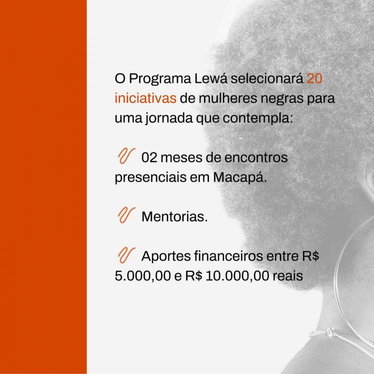 Realizado pelo Fundo Agbara em parceria com a Zwanga African Fashion, o Lewá é um programa de formação técnica e cidadã voltado para mulheres negras, nesta edição atenderá moradoras das cidades de Macapá e Santana, que atuam no ramo da beleza.