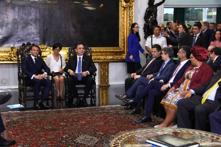 O governador Clécio Luís, acompanhado da primeira-dama, Priscilla Flores, se encontrou com o presidente da França no Congresso Nacional. O chefe do executivo amapaense foi o único governador do país a participar do encontro.